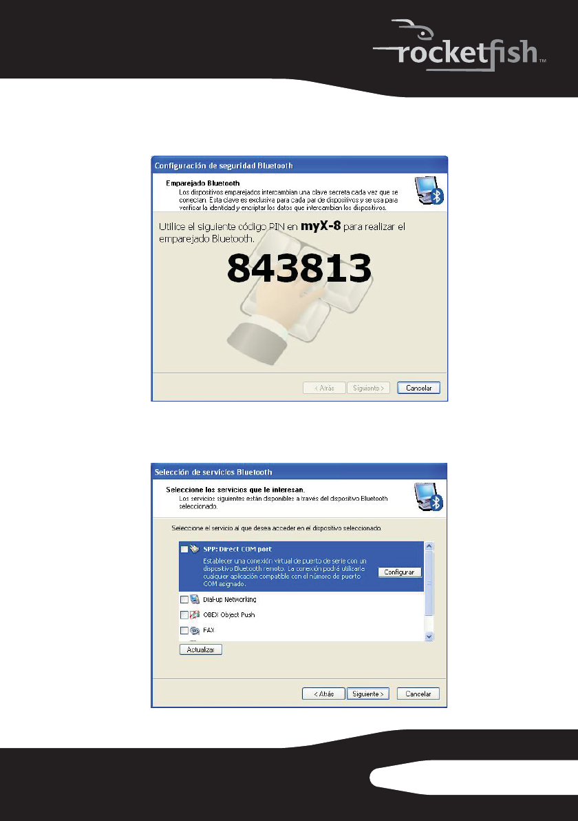 dispositivo. Se abre la pantalla de Selección de servicios Bluetooth.